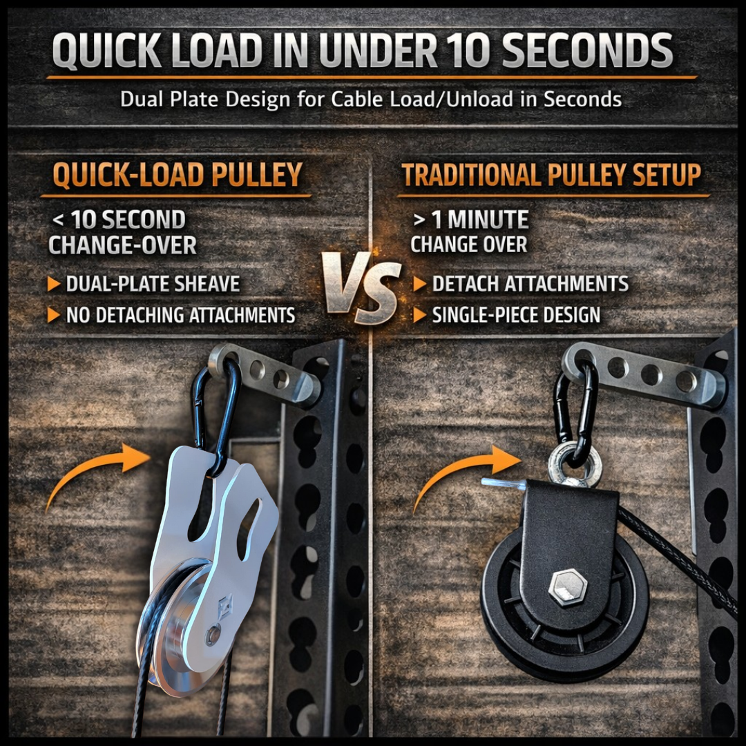 - Quick-Load Design: Effortlessly attach cables or ropes designed to minimize downtime and maximize your workout efficiency. Just swing the side plate down, add cable, swing plate back into position, attach carabiner--you're in business!